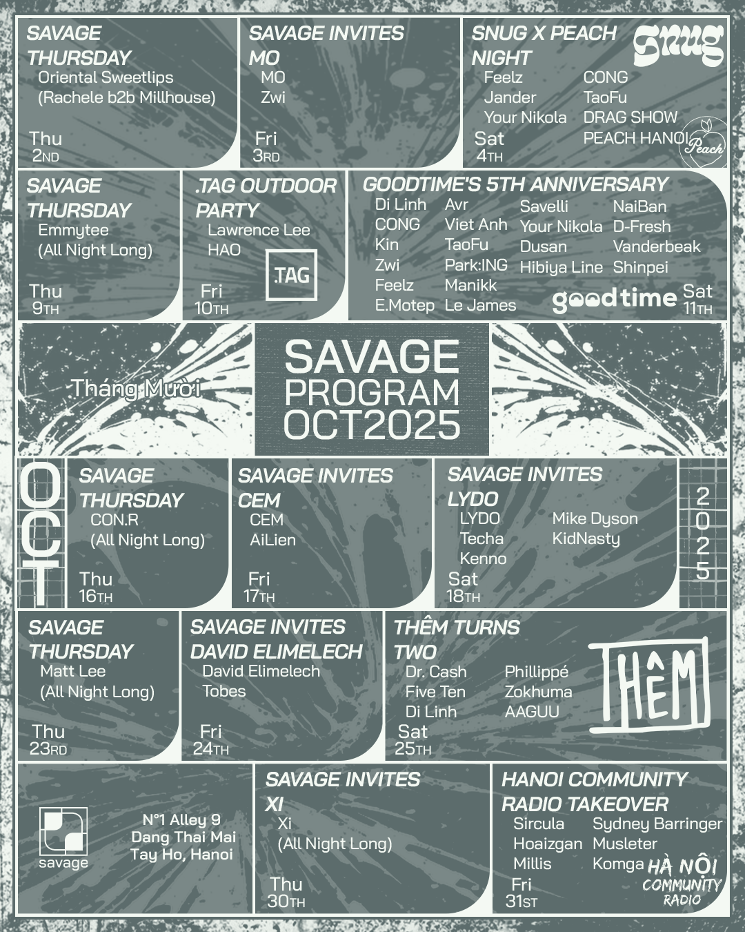 Saigon brewed Khoi Mai, after traveled near and far, relocated in his home country since 2018 and has been one of a key players in Hanoi ever since. As one of Savage crew members, Khoi represents the fun and light hearted attitude with eclectic selection and dreamy percussive sound. Moving smoothly between genres, Khoi puts his personality and influences in use for many dance floors with constant grooves, surprises and delights.